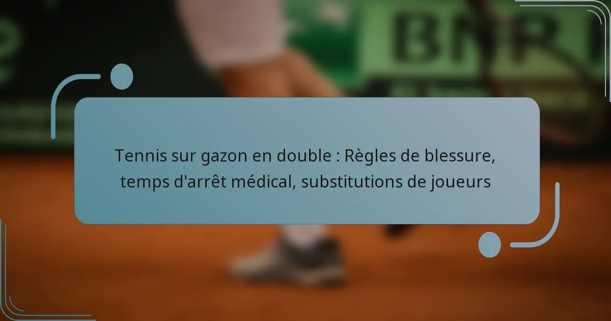 Dans le tennis sur gazon en double, les règles concernant les blessures sont conçues pour garantir la sécurité des joueurs tout en maintenant l’intégrité du match. Ces règles décrivent comment les blessures sont définies, évaluées, signalées et gérées par les officiels, conformément aux réglementations établies par les instances dirigeantes.