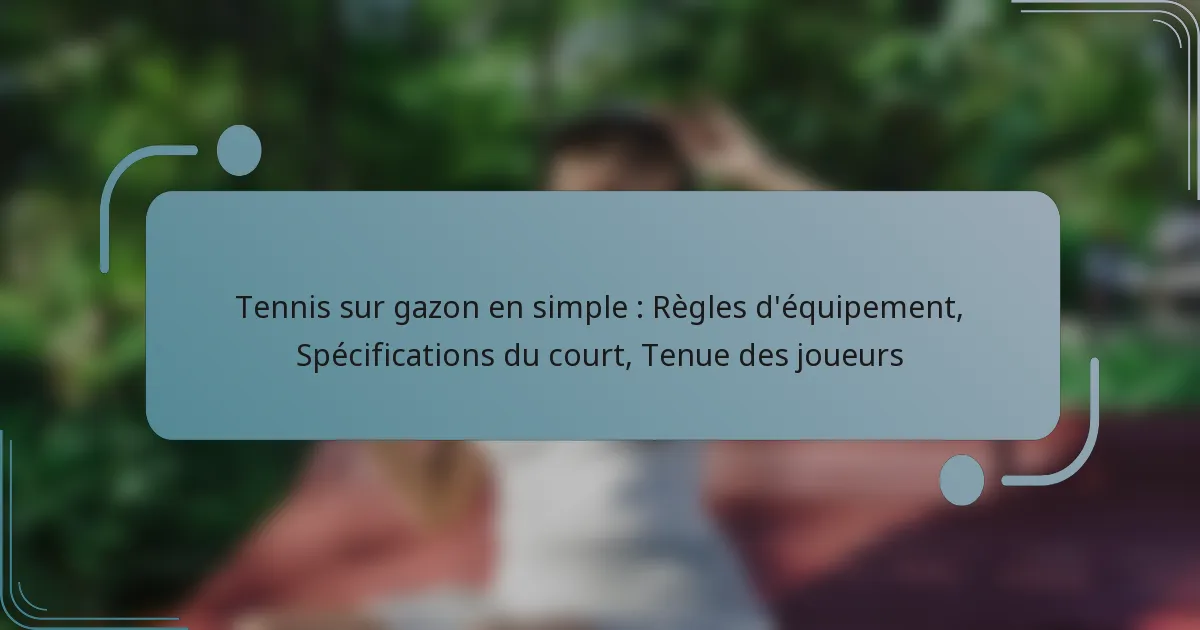 Le tennis sur gazon en simple implique des règles spécifiques concernant l’équipement qui régissent les normes pour les raquettes, les balles et les matériaux, favorisant le fair-play lors des compétitions. La conception du court, adaptée aux matchs en tête-à-tête, comprend des dimensions définies et des types de surface essentiels pour un bon déroulement du jeu. De plus, les joueurs doivent respecter des réglementations vestimentaires qui privilégient le confort et la performance, améliorant leur mobilité et leur efficacité pendant les matchs.